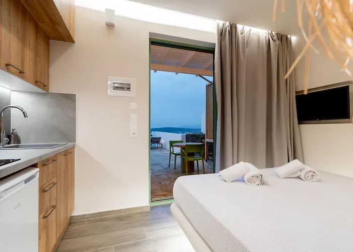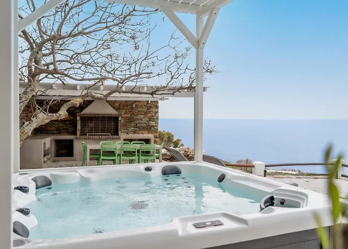 Il "Villa Infinity", Luxury Living By Explore Andros offre agli ospiti un patio, un balcone e un bar sulla terrazza, oltre a comfort moderni come un impianto di climatizzazione. Gli ospiti della struttura potranno usufruire di asciugacapelli, asciugamani e pantofole nel bagno. Inoltre, sono presenti una vasca idromassaggio e una doccia.